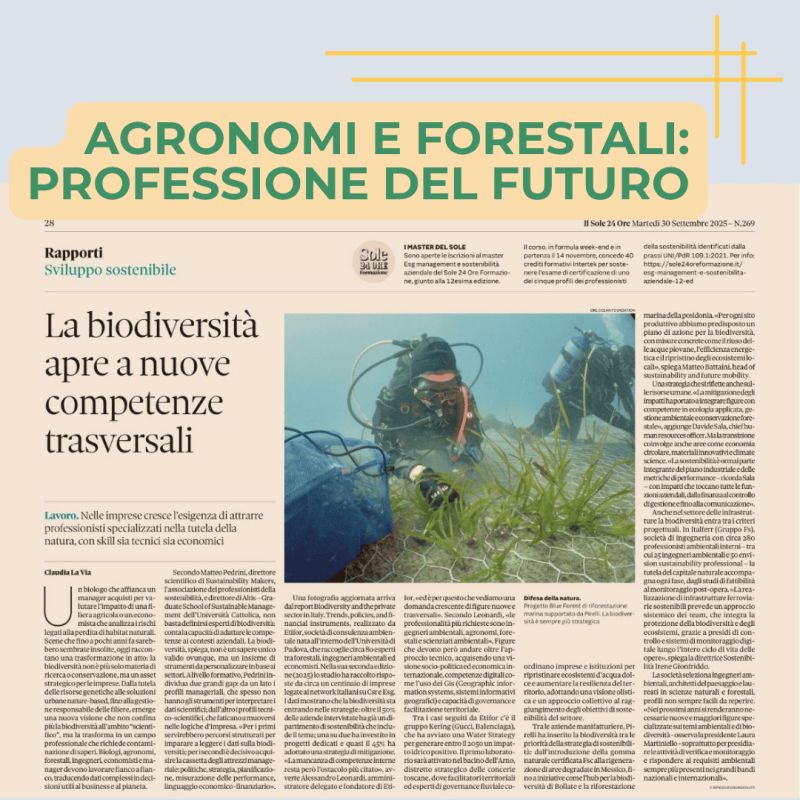Non a caso, l'articolo è introdotto da un sottotitolo che dice: "Nelle imprese cresce l’esigenza di attrarre professionisti specializzati nella tutela della natura, con skill sia tecnici sia economici"
